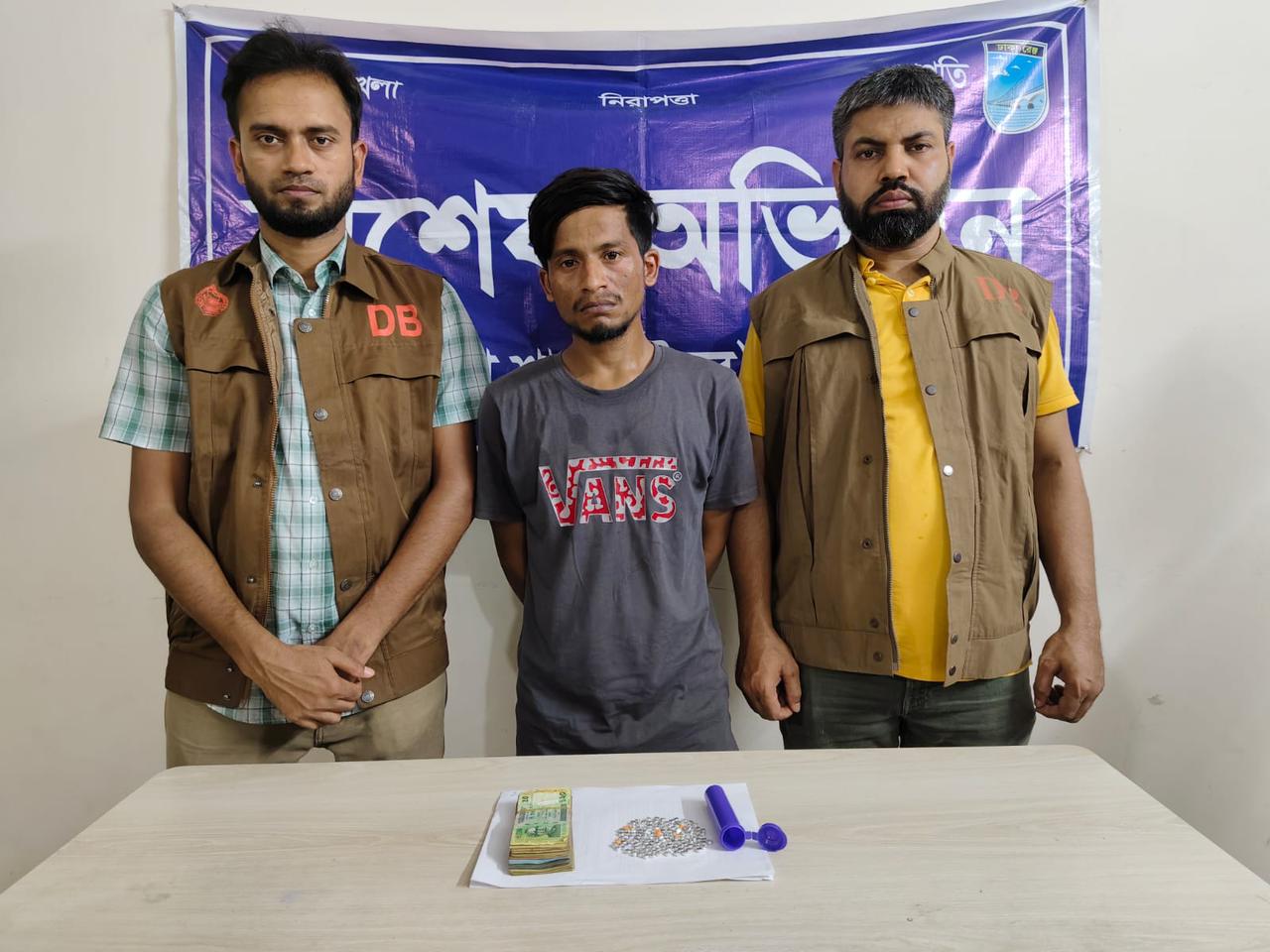 সাভার থেকে ১৫৪ পিস ইয়াবা ট্যাবলেট ও নগদ ৭,৬০০ টাকাসহ ০১ জন গ্রেফতার।