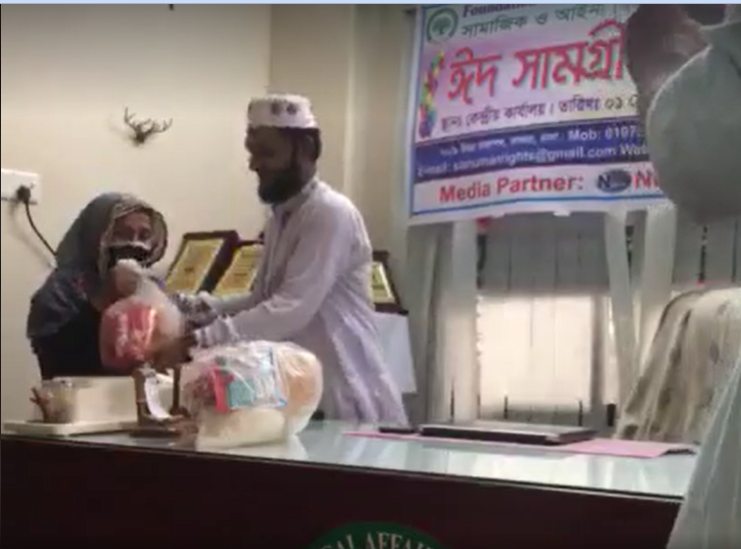 সামাজিক ও আইনী বিষয়ক মানবাধিকার সংস্থার উদ্যোগে অসহায় কর্মহীন হয়ে পড়া প্রায় অর্থ শত পরিবারের মাঝে ঈদ উপহার বিতরণ করা হয়েছে।
