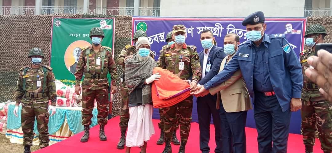 জাতির জনক বঙ্গবন্ধু শেখ মুজিবুর রহমানের স্বদেশ প্রত্যাবর্তন দিবস ও সেনাবাহিনীর শীতকালীন প্রশিক্ষণ উপলক্ষে সাভারের আশুলিয়ায় সমাজের অসহায় ও দুস্থদের মাঝে বাংলাদেশ সেনাবাহিনীর পক্ষ থেকে ত্রাণ সামগ্রী ও শীত বস্ত্র বিতরণ করা হয়েছে।