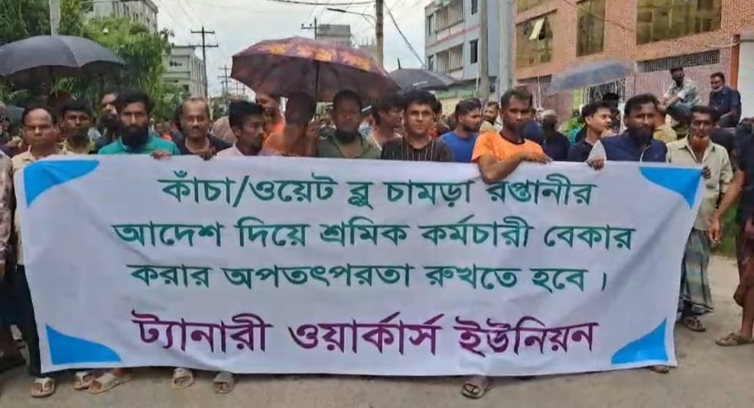 এসময় তারা বিক্ষোভ মিছিলে বলেন, সম্প্রতি সরকারিভাবে কাঁচা ওয়েট ব্লু চামড়া রপ্তানির সিদ্ধান্ত নেওয়ায় এতে করে ট্যানারির শ্রমিকরা বেকার হয়ে পড়বেন ও মালিকরা ব্যবসার লসের মুখে পড়বেন। দ্রুত সরকারিভাবে এই সিদ্ধান্ত প্রত্যাহারের দাবী জানান তারা।