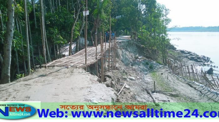 কাজ শেষ হতে না হতেই ভাঙন,রাস্তার উপর বাঁশের মাচাল-নিউজ অলটাইম