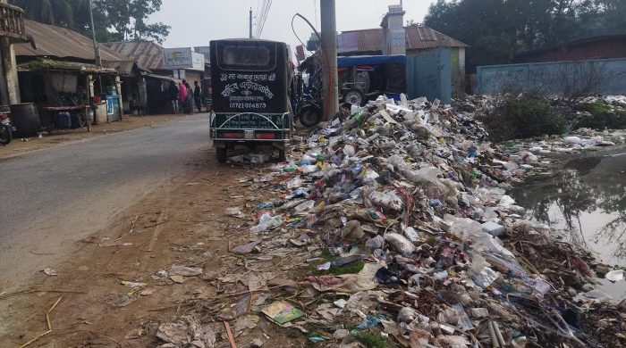 রাজবাড়ীর বালিয়াকান্দি-পাংশা সড়কের বালিয়াকান্দি উপজেলা পরিষদ গেইটের নিকট লেকে ও সড়কের পাশে প্রতিদিনই ময়লা-আবর্জনা ফেলা হচ্ছে। ফলে ময়লা-আবর্জনা স্তুপে পরিনত হয়ে গুরুত্বপুর্ণ সড়কটির উপর চলে আসছে। উপজেলা পরিষদ গেইট এলাকাটি