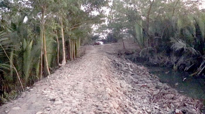 কলাপাড়ায় গোলগাছ কেটে বসতবাড়ির রাস্তা: হুমকিতে বন্যা নিয়ন্ত্রণ বাঁধ