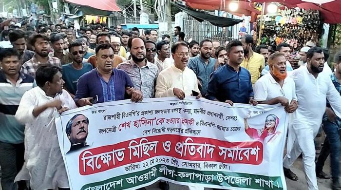 প্রধানমন্ত্রীকে হত্যার হুমকির প্রতিবাদে সাবেক পানি সম্পদ প্রতিমন্ত্রী মাহবুবুর’র নেতৃত্বে কলাপাড়ায় বিক্ষোভ মিছিল ও প্রতিবাদ সভা