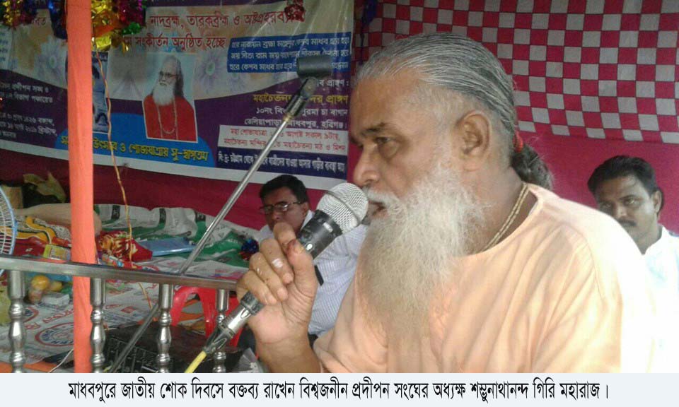 মাধবপুর প্রতিনিধি।।হবিগঞ্জের মাধবপুরে সুরমা চা বাগানে বিশ্বজনীন মহাচৈতন্য প্রদীপন সংঘের উদ্যেগে জাতির জনকের শাহাদত বার্ষিকী উপপলক্ষে শোক সভা অনুষ্ঠিত হয়।