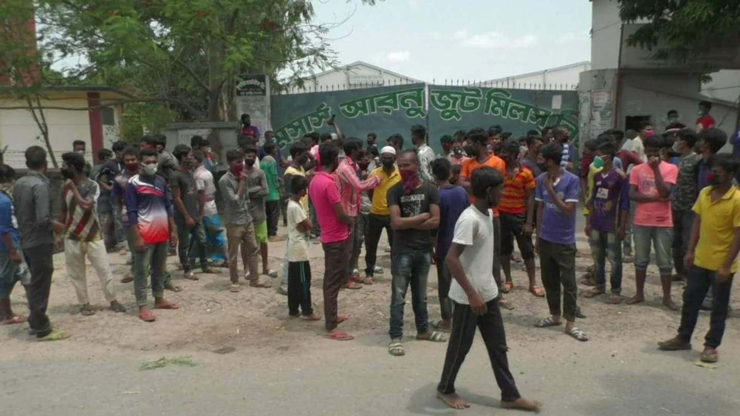 জুটমিলের শ্রমিকরা জানান, করোনাভাইরাসের কারণে গত মার্চ মাসে তাদেরকে ১০ কেজি চাল, ৩ কেজি আলু এবং ১ কেজি সয়াবিন তেল দিয়ে মিল বন্ধ করে দেয় এবং প্রতি সপ্তাহে তাদের খাবার দেওয়া হবে- বলে তাদের ভোটার আইডি কার্ড নিয়ে নেয় মিল কর্তৃপক্ষ। কিন্তু তাদের আর কোনও প্রকার সহায়তা করা হয়নি। এতে করে শ্রমিকদের খাবারের সংকট দেখা দিয়েছে।