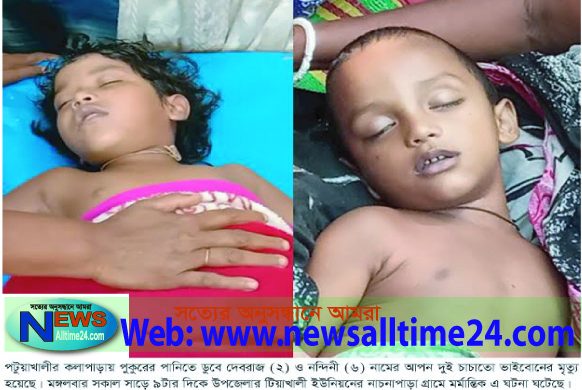 পটুয়াখালীর কলাপাড়ায় পুকুরের পানিতে ডুবে নন্দিনী (৬) ও দেবরাজ (২) নামের আপন দুই চাচাতো ভাইবোনের মৃত্যু হয়েছে। মঙ্গলবার সকাল দশটায় উপজেলার টিয়াখালী ইউনিয়নের নাচনাপাড়া গ্রামে এ ঘটনা ঘটে। মৃত নন্দিনী