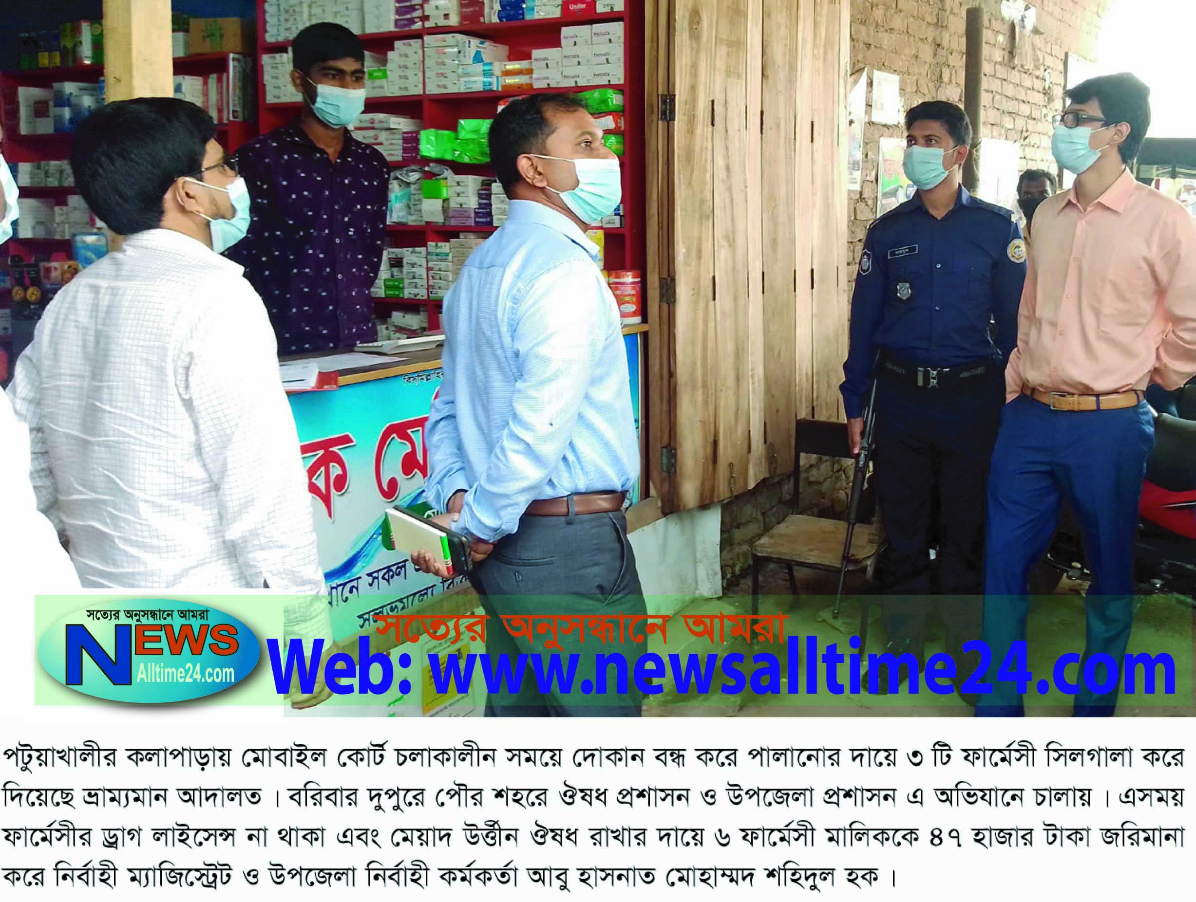 মো.ফরিদ উদ্দিন বিপু,কলাপাড়া(পটুয়াখালী)প্রতিনিধি,২২ নভেম্বর।। পটুয়াখালীর কলাপাড়ায় মোবাইল কোর্ট চলাকালীন সময়ে দোকান বন্ধ করে পালানোর দায়ে ৩ টি ফার্মেসী সিলগালা করে দিয়েছে ভ্রাম্যমান আদালত। বরিবার দুপুরে পৌর শহরে ঔষধ প্রশাসন ও আরো..