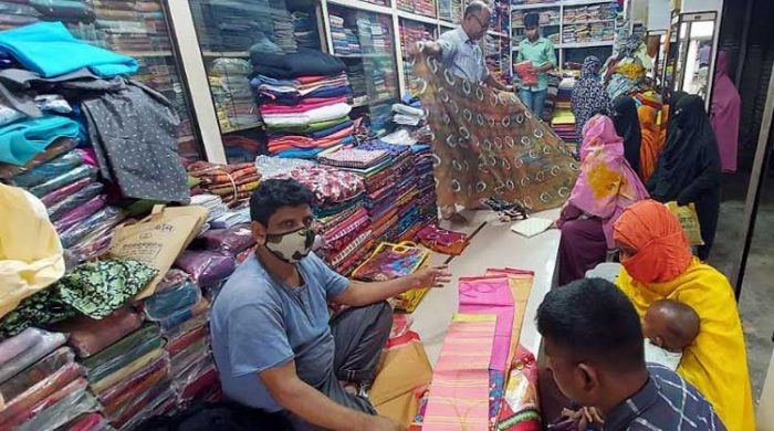 এবার ঈদের কেনাকাটা অনেকটা আগেই শুরু হয়েছে। দুই বছর পর জমে উঠেছে ঈদের বাজার। নতুন পোশাক,প্রসাধনী,জুতা আর গহনার দোকানে ভিড় বেড়েছে। ক্রেতাদের পদচারণে মহামারী করোনার ধকল সামলে ঘুরে দাঁড়ানোর চেষ্টা