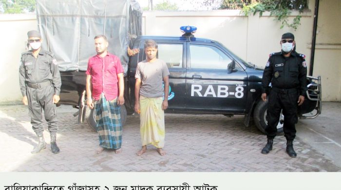 রাজবাড়ীর বালিয়াকান্দিতে গাঁজাসহ ২ মাদক ব্যবসায়ীকে গ্রেফতার করেছে র‌্যাব-৮ সদস্যরা। গ্রেফতারকৃতরা হলো, উপজেলার দুর্গাপুর গ্রামের মতিয়ার রহমানের ছেলে মোঃ মাসুদ রানা (৩৬), আড়কান্দি গ্রামের নাজিম উদ্দিন শেখের ছেলে মোঃ রইচ