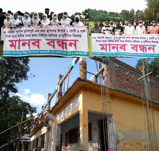 ষ্টাফ রিপোটারঃ নাটোরের লালপুরে দীর্ঘ্য ২৫ বছরের পূরানো ১তলা স্থাপনার উপরে দ্বীতল ভবন নির্মান ও বিভিন্ন অনিয়মের বিরুদ্ধে মানব বন্ধন অনুষ্টিত হয়। বৃহস্পতিবার (২৫ জুন) সকাল ১০ ঘটিকায় উপজেলার পাইকপাড়া