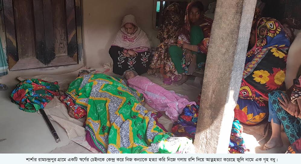 মোঃ সাগর হোসেন,বেনাপোল প্রতিনিধিঃ শার্শার পল্লীতে একটি স্বর্ণের চেইনকে কেন্দ্র করে গর্ভোবতি মা তার ৬ বছরের শিশু কন্যাকে বালিশ চাপা দিয়ে শ্বাররোধ করে হত্যা করে নিজে গলায় রশি দিয়ে আরো..