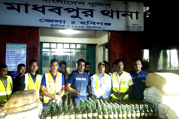 মাধবপুর প্রতিনিধি:হবিগঞ্জের মাধবপুর উপজেলার সোনাই ব্রিজের নিচ থেকে বিপুল পরিমাণ ভারতীয় মদ ও আতশবাজি আটক করেছে থানা পুলিশ। বুধবার রাত ১০টার দিকে ওই এলাকায় অভিযান চালিয়ে একটি ইঞ্জিন চালিত নৌকা