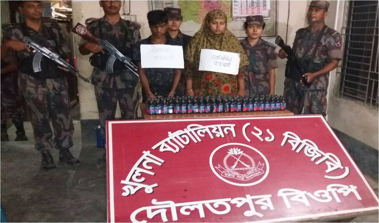 মোঃসাগর হোসেন,বেনাপোল(যশোর)প্রতিনিধি: যশোরের বেনাপোল সীমান্ত থেকে ১০৪ বোতল ফেনসিডিলসহ পিংকি খাতুন (২৭) ও মাসুম (১৯) নামে দুই মাদক ব্যবসায়ীকে আটক করেছে বর্ডার গার্ড বাংলাদেশ (বিজিবি) সদস্যরা। শনিবার(৩/০৮/১৯)ইং তারিখ ভোরে বেনাপোল