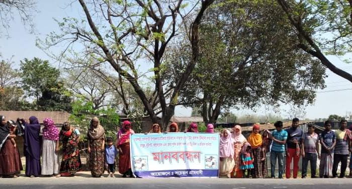 রাজশাহী গোদাগাড়ীতে নৃসংশভাবে হামলা, ভাংচুর, অগ্নিসংযোগ করে বাড়ি ও জমি দখলের প্রতিবাদে মানববন্ধন করেছে ভুক্তভোগী পরিবার ও এলাকাবাসী। মঙ্গলবার(১৫ মার্চ) সকাল ১১টার সময় বসন্তপুর বাজারে এ মানববন্ধন অনুষ্ঠিত হয়। উপজেলার