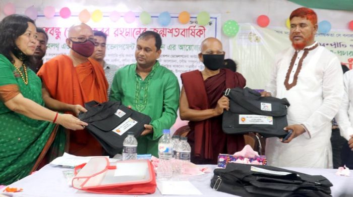 সাগরকন্যা কুয়াকাটায় রাখাইন জনগোষ্ঠীর উদ্যোগে জাতীর জনক বঙ্গবন্ধু শেখ মজিবুর রহমানের জন্মশতবার্ষিকী পালিত হয়েছে। এ উপলক্ষে বৃহস্পতিবার দুপুরে রাখাইন ছাত্রছাত্রীদের মাঝে সাইকেল ও স্কুল ব্যাগ বিতরণ করা হয়েছে। এর আগে