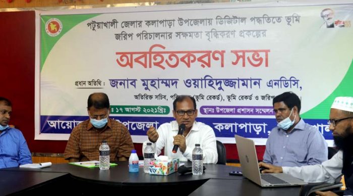 পটুয়াখালী কলাপাড়া ডিজিটাল পদ্ধতিতে ভ‚মি জরিপ পরিচালনার সক্ষমতা বৃদ্ধিকরণ প্রকল্পের অবহিতকরণ সভা অনুষ্ঠিত হয়েছে। মঙ্গলবার দুপুরে উপজেলা পরিষদ দরবার হলে এ সভা অনুষ্ঠিত হয়। সভায় প্রধান অতিথির বক্তব্য রাখেন ভ‚মি