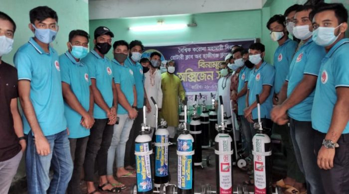 চাঁদপুরের হাজীগঞ্জে ৩টি স্বেচ্ছাসেবী সংগঠনকে ১২টি অক্সিজেন সিলিন্ডার প্রদান করলেন হাজীগঞ্জ উপজেলার ১১নং হাটিলা পশ্চিম ইউনিয়নের ধড্ডা গ্রামের কৃতী সন্তান  সুনামধন্য ব্যবসায়ী ইঞ্জিনিয়ার মোশারেফ হোসেন খোকন। মঙ্গলবার সকালে রোটারী ক্লাব