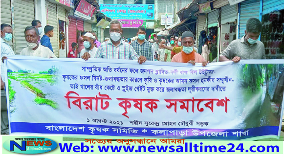 পটুয়াখালীর কলাপাড়ায় জলাবদ্ধতা নিরসনে কৃষক সমাবেশ অনুষ্ঠিত হয়েছে । রবিবার বেলা ১১ টার দিকে কলাপাড়া পৌরশহরের সুরেন্দ্র মোহন চৌধুরী সড়কের মনোহরীপট্রিতে এ সমাবেশ অনুষ্ঠিত হয়েছে। বাংলাদেশ কৃষক সমিতি কলাপাড়া উপজেলা
