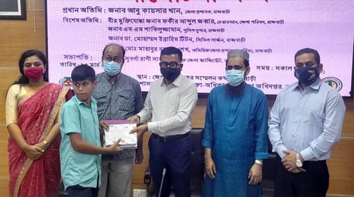 বাংলাদেশ সাংবাদিক কল্যাণ ট্রাস্টে থেকে করোনাকালে প্রধানমন্ত্রীর উপহার হিসেবে রাজবাড়ী জেলায় ২য় পর্যায়ে ১৬ জন সাংবাদিক পেয়েছেন ১০ হাজার করে অর্থ সহায়তা। বুধবার (১৬ মার্চ) দুপুরে জেলা প্রশাসকের কার্যালয়ের সম্মেলন