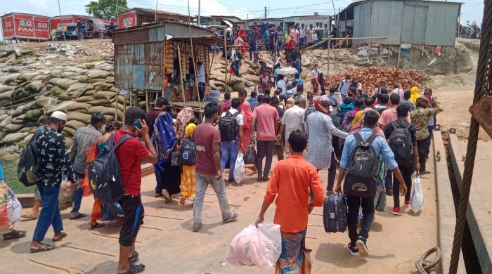 রাত পোহালেই ঈদ, কর্মস্থল ছেড়ে বাড়ির পথে মানুষ। ফলে ২১ জেলার মানুষের রাজধানী ছেড়ে বাড়ি ফেরার অন্যতম নৌরুট দৌলতদিয়া-পাটুরিয়া ফেরি ও লঞ্চঘাটে উপচে পড়া ভিড় সৃষ্টি হয়েছে। মঙ্গলবার (২০ জুলাই)