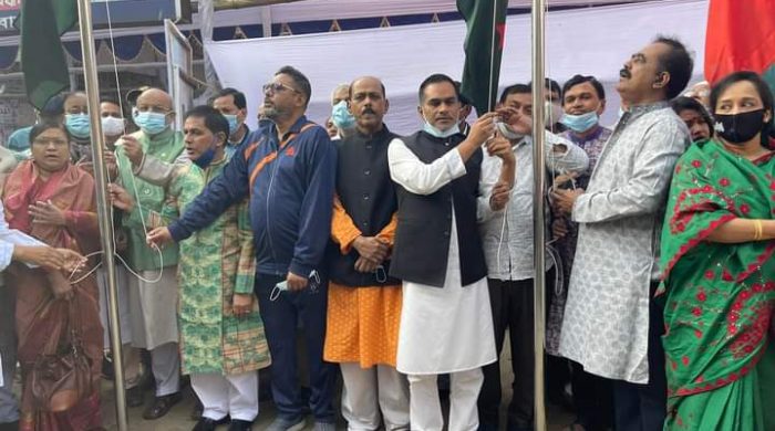 রাজবাড়ীতে বাঙালি জাতির স্বাধীনতা সংগ্রাম ও মুক্তিযুদ্ধের ইতিহাসে স্বর্ণাক্ষরে লেখা গৌরবের এক অনন্য দিন উপলক্ষে জেলা আওয়ামী লীগ জাতীয় ও দলীয় পতাকা উত্তোলন ও জাতির পিতা বঙ্গবন্ধু শেখ মুজিবুর রহমানের