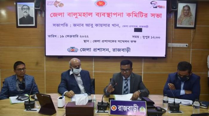 রাজবাড়ীতে জেলা জেলা প্রশাসক আবু কায়সার খান এর সভাপতিত্বে বালুমহাল ব্যবস্থাপনা কমিটির সভা অনুষ্ঠিত হয়েছে। শনিবার (১৯ ফেব্রুয়ারি) সকালে জেলা প্রশাসকের সম্মেলন কক্ষে উক্ত সভা অনুষ্ঠিত হয়। এ সময় প্রধান