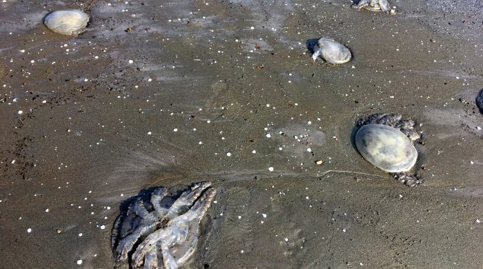 পর্যটন কেন্দ্র কুয়াকাটার সৈকতে আবারো ভেসে এসেছে জেলিফিশ। শুক্রবার সন্ধ্যায় সৈকতের জিরো পয়েন্টের পশ্চিম পাশে ছড়িয়ে ছিটিয়ে থাকা অসংখ্য জেলিফিশ দেখতে পায় স্থানীয়রা। সমুদ্রের জোয়ারের পানির সাথে এসব জেলিফিশ ভেসে