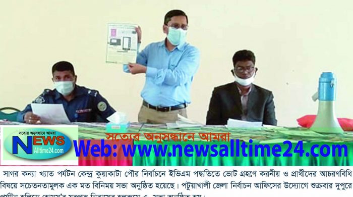 সাগর কন্যা খ্যাত পর্যটন কেন্দ্র কুয়াকাটা পৌর নির্বাচনে ইভিএম পদ্ধতিতে ভোট গ্রহণে করনীয় ও প্রার্থীদের আচরণবিধি বিষয়ে সচেতনতামুলক এক মত বিনিময় সভা অনুষ্ঠিত হয়েছে। পটুয়াখালী জেলা নির্বাচন আফিসের উদ্যোগে শুক্রবার