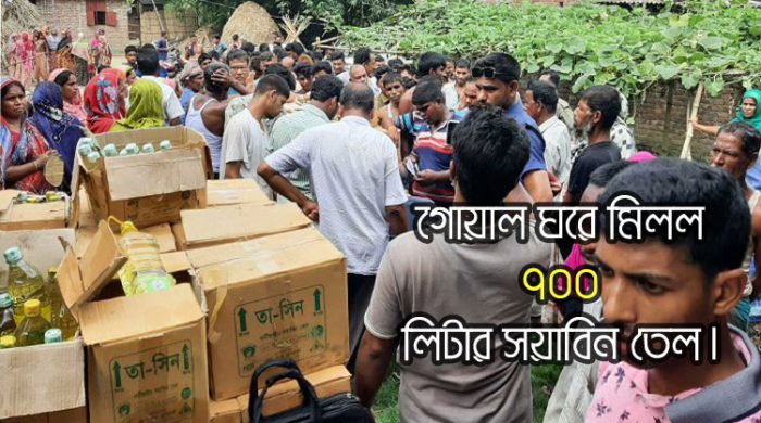 নাটোরের বড়াইগ্রামে সিরজুল ইসলাম নামে এক ব্যবসায়ীর গোয়ালঘর থেকে ৭০০ লিটার বোতলজাত সয়াবিন তেল উদ্ধার করা হয়েছে। পরে তা অবৈধ মজুদের অভিযোগে ৫০ হাজার টাকা জরিমানা এবং জব্দ তেল স্থানীয়দের