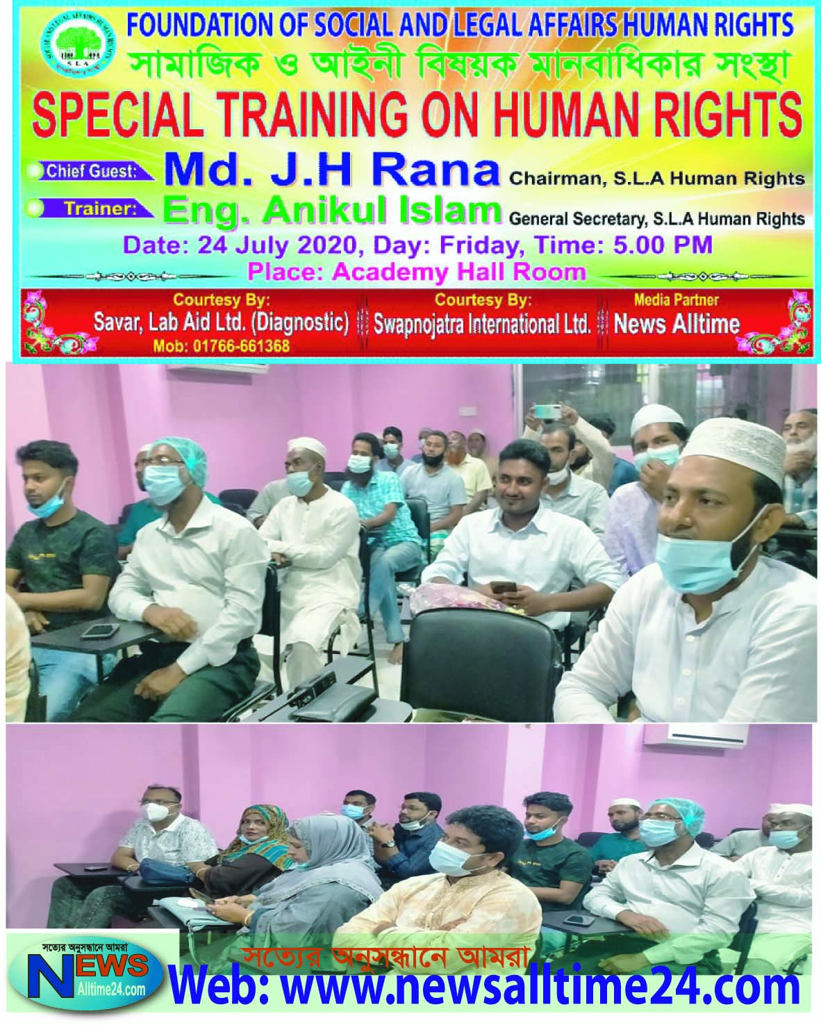 সামাজিক ও আইনি বিষয়ক মানবাধিকার সংস্থা কর্তৃক আয়োজিত বিশেষ ট্রেনিং ও সদস্যদের মাঝে আইডি কার্ড বিতরণ অনুষ্ঠান অনুষ্ঠিত হয়। উক্ত অনুষ্ঠানে উপস্থিত ছিলেন মো: জে এইচ রানা,চেয়ারম্যান এস এল এ আরো..
