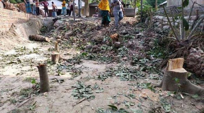 নাটোর সদর উপজেলার বড়হরিশপুর ইউনিয়নের শংকরভাগ গ্রামের একজন বৃদ্ধার জমি জোরপূর্বক দখল করে, ১২টি মেহগনি গাছ সহ ১৮ টি গাছ কেটে নিয়ে যাওয়ার অভিযোগ উঠেছে। ভুক্তভোগী বলছেন, মিথ্যার আশ্রয় নিয়ে