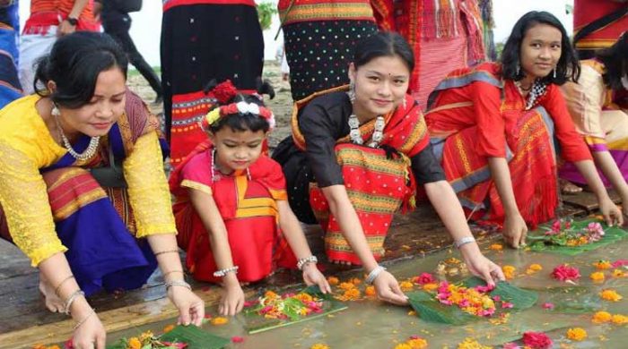 রাঙ্গামাটিতে পাহাড়ি জনগোষ্ঠীর তিন দিনব্যাপী বিজু বৈসু সাংগ্রাই তথা বৈসাবি উৎসব শুরু হয়েছে। এবার উৎসব ঘিরে পাহাড় জুড়ে বইছে আনন্দের বন্যা। সোমবার (১২ এপ্রিল) সকালে রাঙ্গামাটির কাপ্তাই হ্রদের গঙ্গা দেবীর