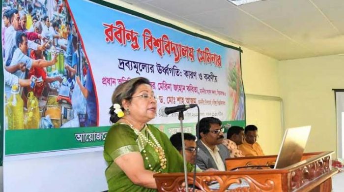 ১২ এপ্রিল ২০২২ রবীন্দ্র বিশ্ববিদ্যালয়ের একাডেমিক ভবনের সেমিনার কক্ষে অর্থনীতি বিভাগের আয়োজনে “দ্রব্যমূল্যের ঊর্ধ্বগতি: কারণ ও করণীয়” শীর্ষক একটি সেমিনার অনুষ্ঠিত হয়। রবীন্দ্র বিশ্ববিদ্যালয়ের ভাইস-চ্যান্সেলরের সভাপতিত্বে সেমিনারে প্রধান অতিথি হিসেবে