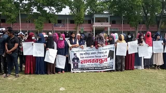 রাজবাড়ীর পাংশা সরকারি কলেজের সাধারন শিক্ষার্থীরা মেধাবী ছাত্র মোঃ সাজিদুর রহমান (সিফাত) হত্যার বিচারের দাবিতে মানববন্ধন করেছে। বুধবার (২৩ মার্চ) সকালে পাংশা সরকারি কলেজ মাঠে এ মানববন্ধন কর্মসূচি পালিত