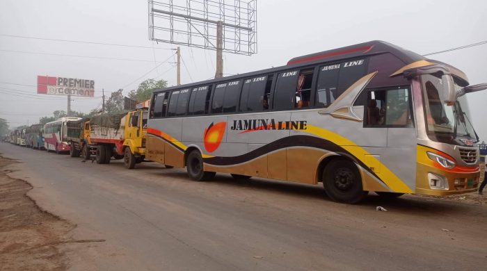 রাজবাড়ীর দৌলতদিয়া-পাটুরিয়া নৌরুট ব্যবহারকারী পণ্যবাহী ট্রাক ও কাভার্ডভ্যানের চালকদের ৩০ মিনিটের নদী পার হতে সময় লেগে যাচ্ছে ৪৫ থেকে ৫০ ঘন্টা। নিরাপত্তাহীনতার মধ্যে সড়কে কাটাতে হচ্ছে দিনের পর দিন। ঘণ্টার