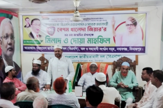 আর কে ওসমান আলী, নবাবগঞ্জ (দিনাজপুর) প্রতিনিধি:- দিনাজপুরের নবাবগঞ্জে বিএনপির চেয়ারপার্সন ও সাবেক প্রধানমন্ত্রী খালেদা জিয়ার ৮১ তম জন্মবার্ষিকী উপলক্ষে আলোচনা সভা ও দোয়া মাহফিল অনুষ্ঠিত হয়েছে। শুক্রবার ( ১৫ আগষ্ট)