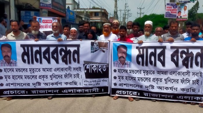 বিশেষ প্রতিনিধি : মুজাহিদ খাঁন কাওছার সাবেক ওমান প্রবাসী হাসেম মন্ডল কে গলা কেটে হত্যার ঘটনায় আসামিদের গ্রেপ্তার ও ফাঁসির দাবিতে সড়ক অবরোধ করে বিক্ষোভ মিছিল ও মানববন্ধন করেছে এলাকাবাসী