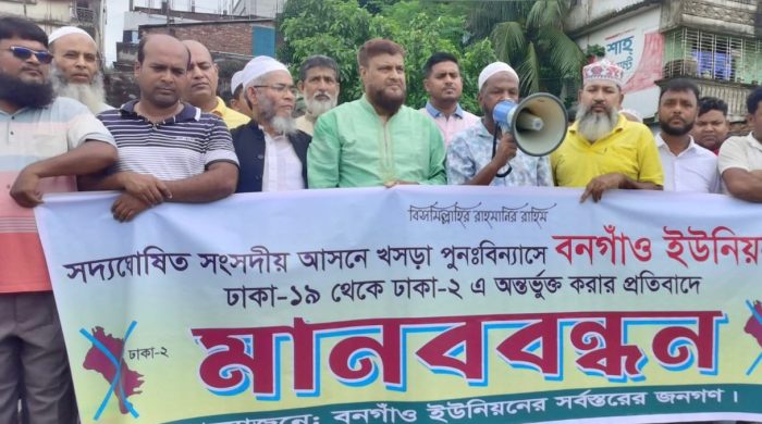 সাভার প্রতিনিধি ইব্রাহিম খলিল সাভার সদ্যঘোষিত সংসদীয় আসনে খসড়া পুনঃবিন্যাসে বনগাঁও ইউনিয়ন ঢাকা-১৯ থেকে ঢাকা-২ এ অন্তর্ভুক্ত করার প্রতিবাদে মানববন্ধন করেছে বনগাঁও ইউনিয়নবাসী। রবিবার সকালে ঢাকা আরিচা মহাসড়কের বলিয়ারপুর বাসস্ট্যান্ড