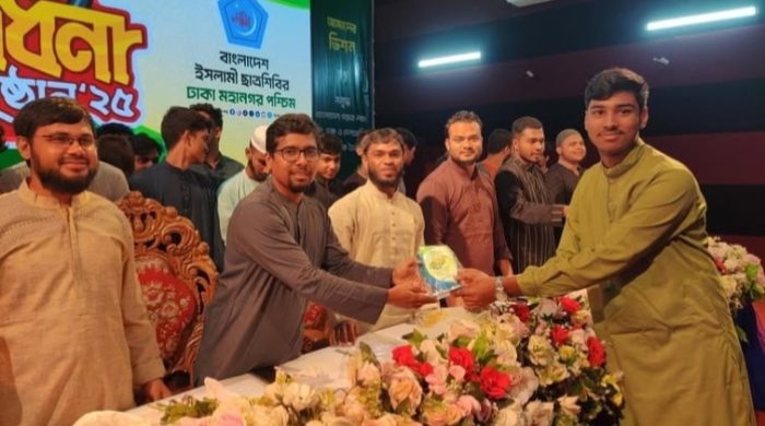 দাখিল ও সমমান পরীক্ষায় জিপিএ-৫ প্রাপ্ত কৃতি শিক্ষার্থীদের সংবর্ধনা দিয়েছে বাংলাদেশ ইসলামী ছাত্রশিবির ঢাকা মহানগর পশ্চিম শাখা। বুধবার সকালে রাজধানীর আগারগাঁওয়ে জাতীয় গ্রন্থাগার ও আর্কাইভ অডিটোরিয়ামে এই সংবর্ধনা অনুষ্ঠিত হয়।