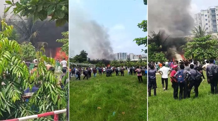 রাজধানীর উত্তরায় বাংলাদেশ বিমান বাহিনীর একটি প্রশিক্ষণ বিমান বিধ্বস্ত হয়েছে। এ ঘটনায় পাইলটসহ অসংখ ব্যাক্তি নিহত হয়েছেন বলে জানিয়েছে ফায়ার সার্ভিস। সোমবার (২১ জুলাই) দুপুর আড়াইটার দিকে ফায়ার সার্ভিসের নিয়ন্ত্রণ