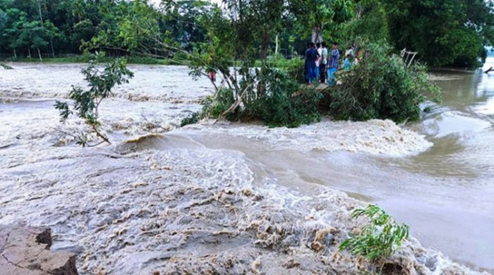 সিলেটের জকিগঞ্জে প্রবল বেগে পানি ঢুকছে। ফলে একের পর এক প্লাবিত হচ্ছে বিস্তীর্ণ এলাকা। উপজেলার অমলশিদ এলাকায় সুরমা ও কুশিয়ারা নদীর উৎসস্থলের একটি ডাইক (নদী প্রতিরক্ষা বাঁধ) ভেঙে যাওয়ায় এই