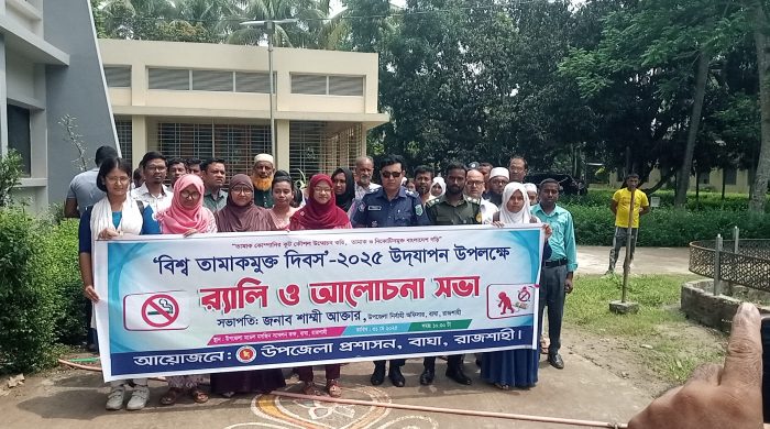 রাজশাহীর বাঘায় বিশ্ব তামাকমুক্ত দিবস পালিত হয়েছে। এ উপলক্ষে শনিবার সকাল সাড়ে ১০টায় বাঘা উপজেলা প্রশাসনের উদ্যোগে উপজেলা প্রশাসকের কার্যালয়ের সম্মুখ থেকে একটি র‍্যালি বের হয় এবং উপজেলার বিভিন্ন সড়ক আরো..